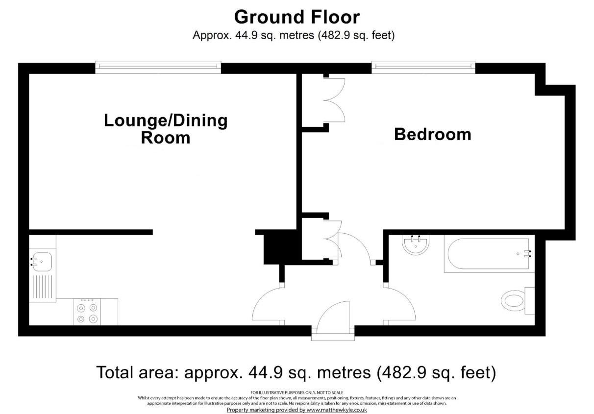Doors to Kitchen, Bedroom and Bathroom. Entryphone intercom. Wall-mounted electric heater.